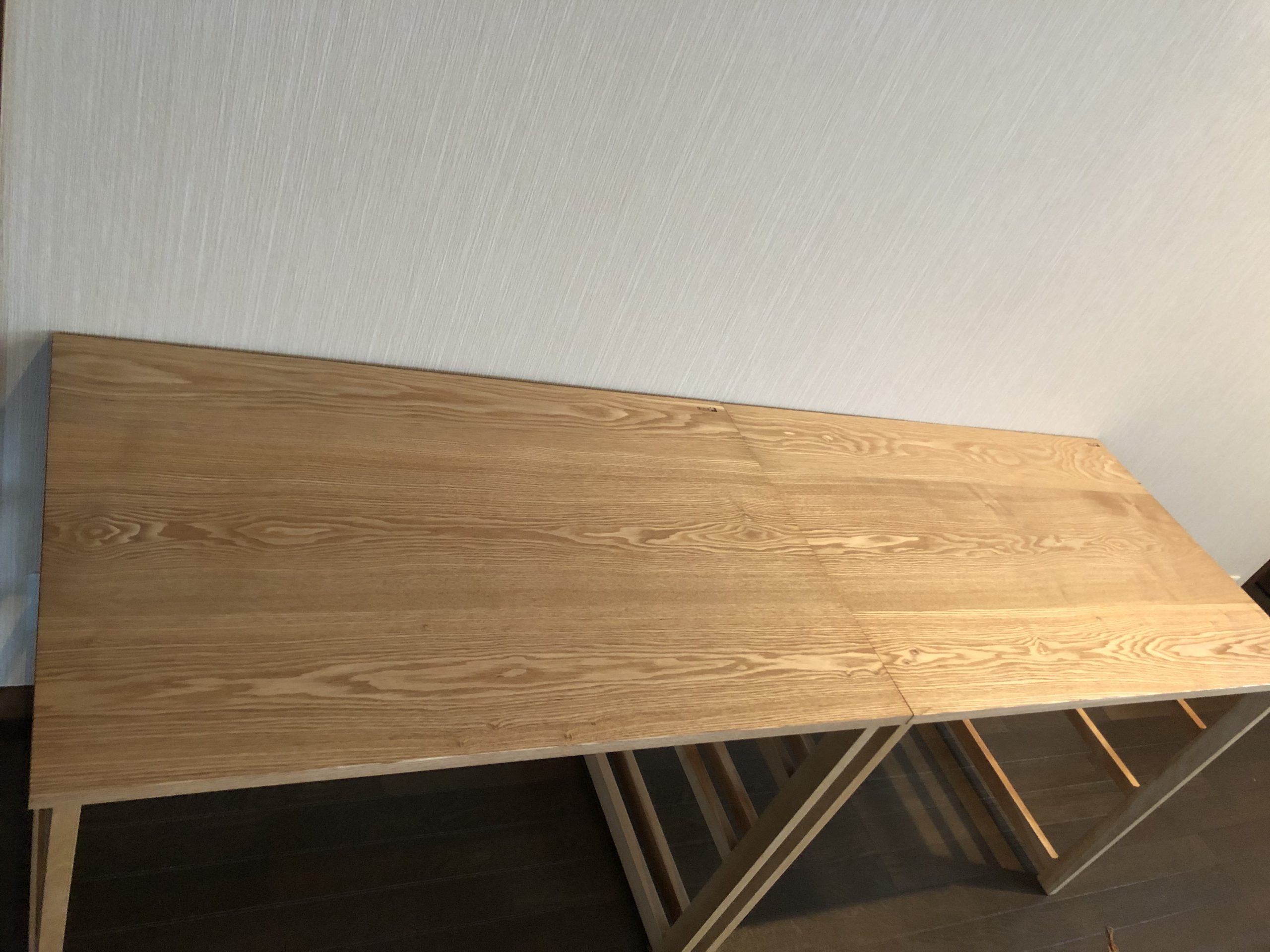 この天板も長年使っていて汚れとかもあったので、接ぎ合わせたところで一度カットして両面を鉋盤で1mmずつ削って綺麗にして脚の製作にタモ材がなかったので、強度もある樺材を使うことにしました。
