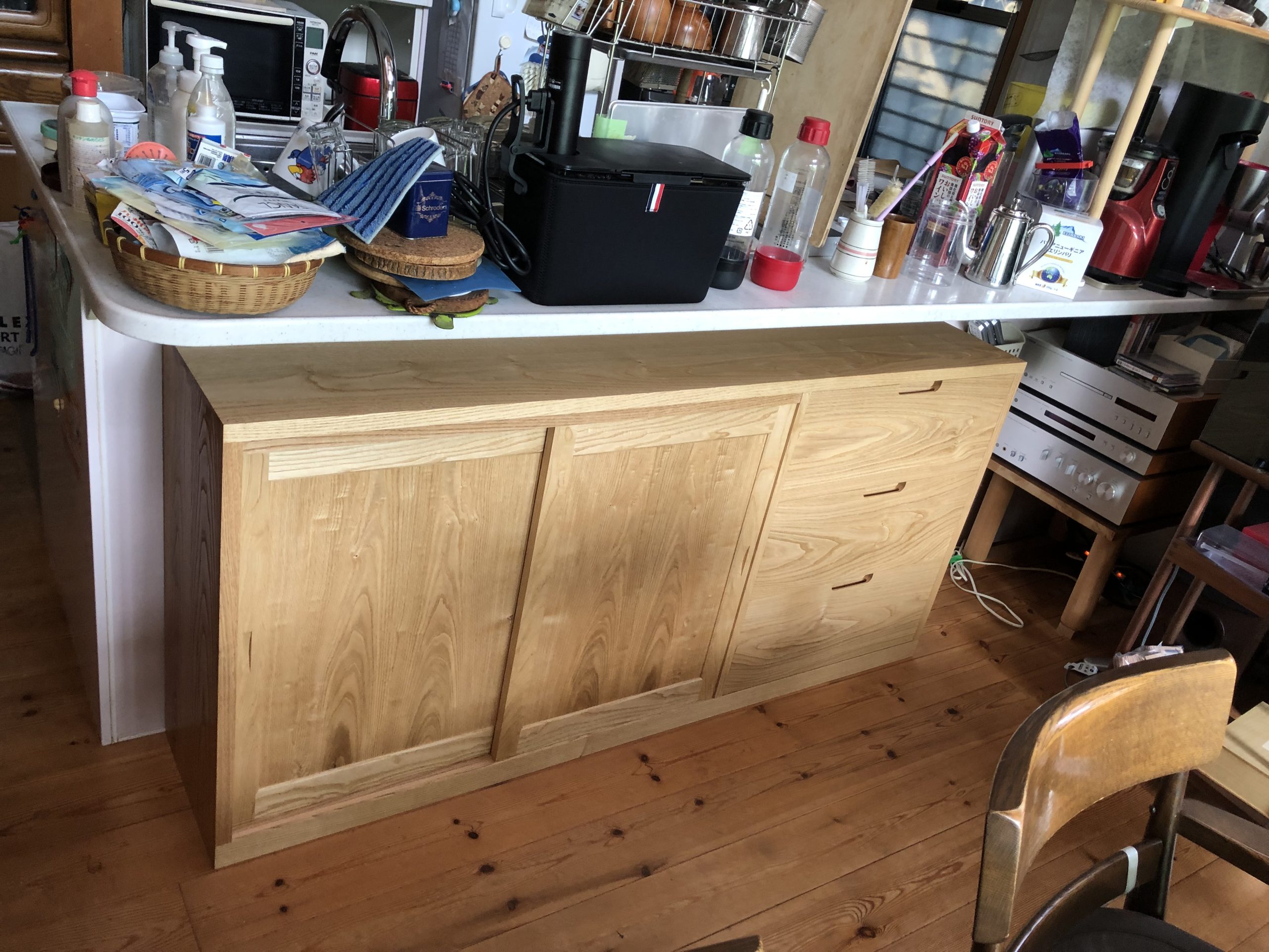 このカウンター下の収納棚は、いろいろとインターネットで探されていて見つけてくださったお客様からの製作依頼です。