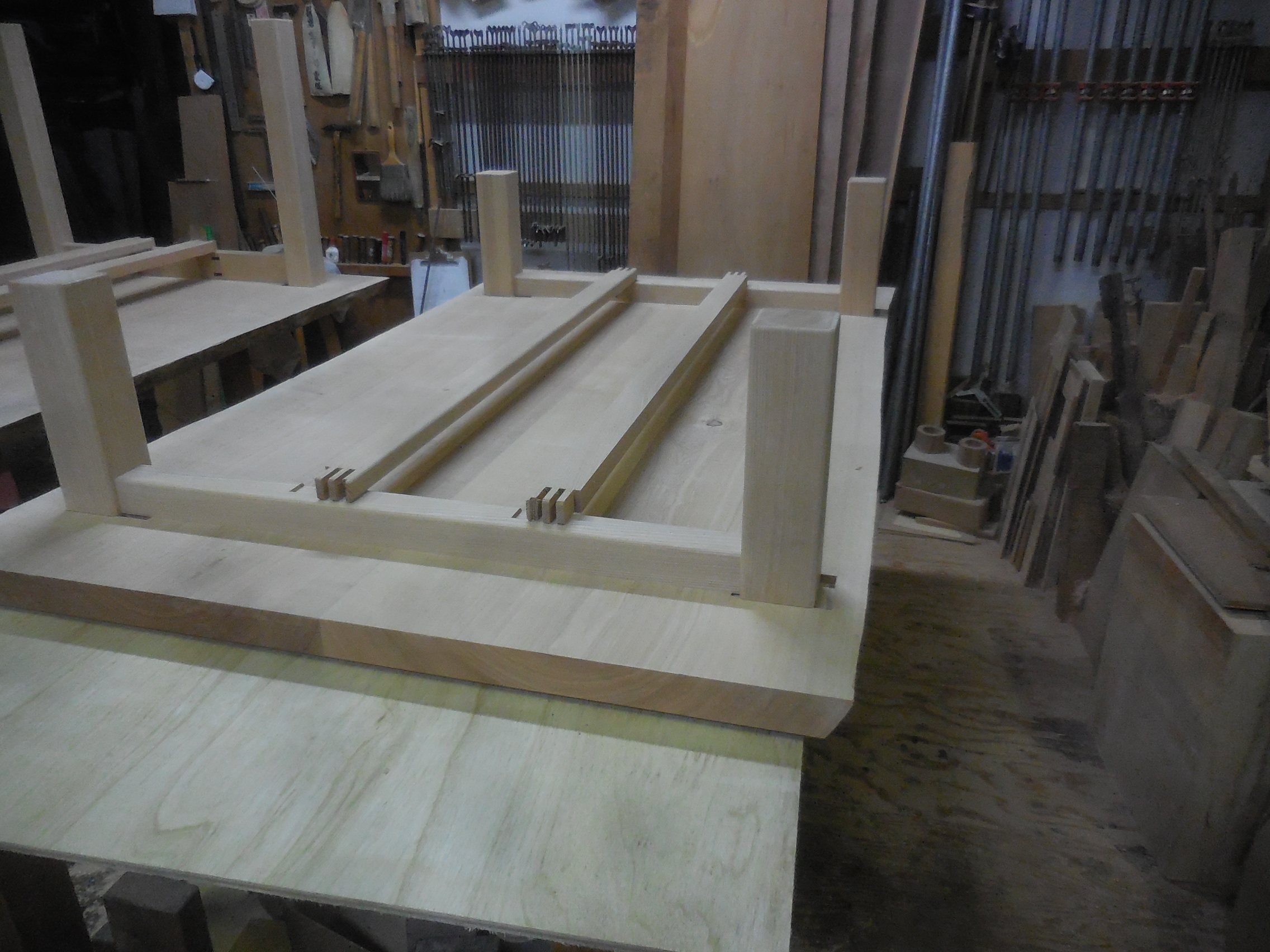 搬入の時は、天板と脚幕板と分解しての搬入として何とか一人で搬入できるようにしたのですが、お客様にも手伝っていただき、