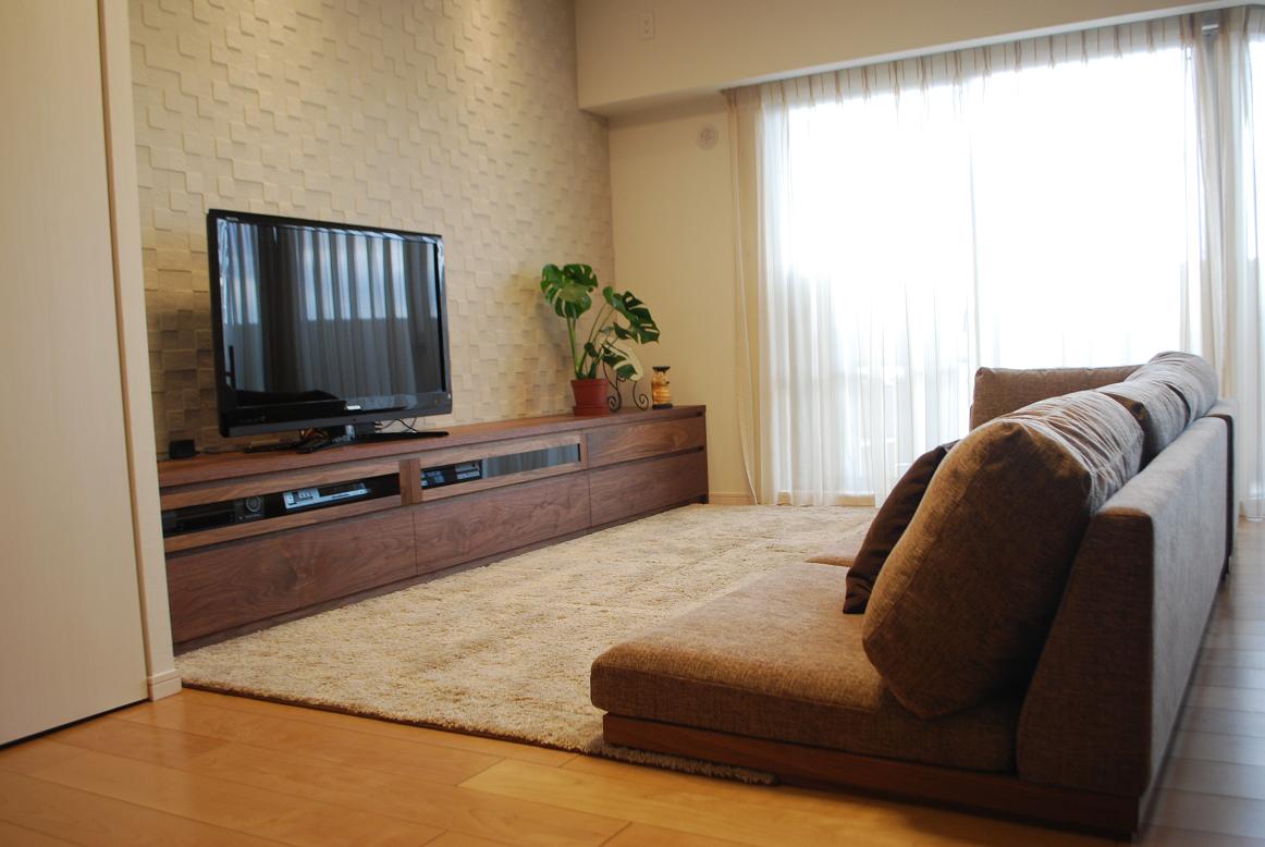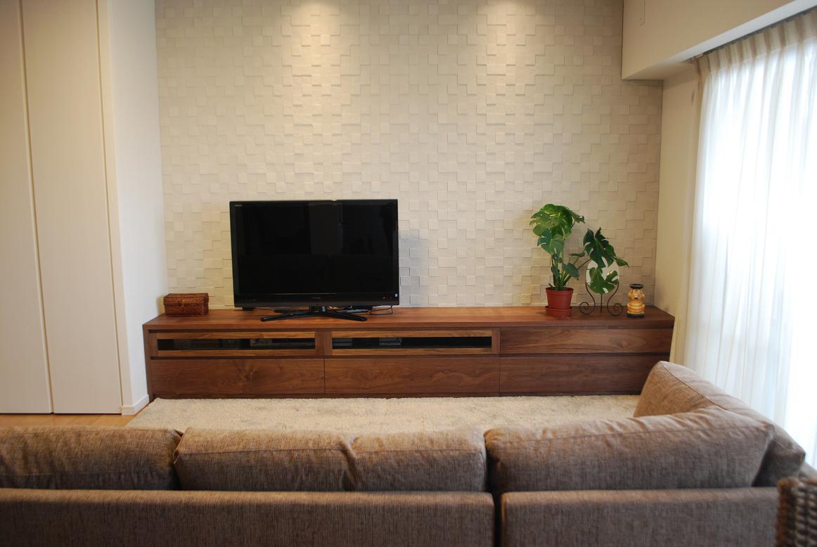 このテレビボードは、両側壁になっているので本体は隙間を両側5mmとり、天板を2mm長くして現場で壁に合わせて削らせていただきました。思いのほか時間がかかってしまいました。