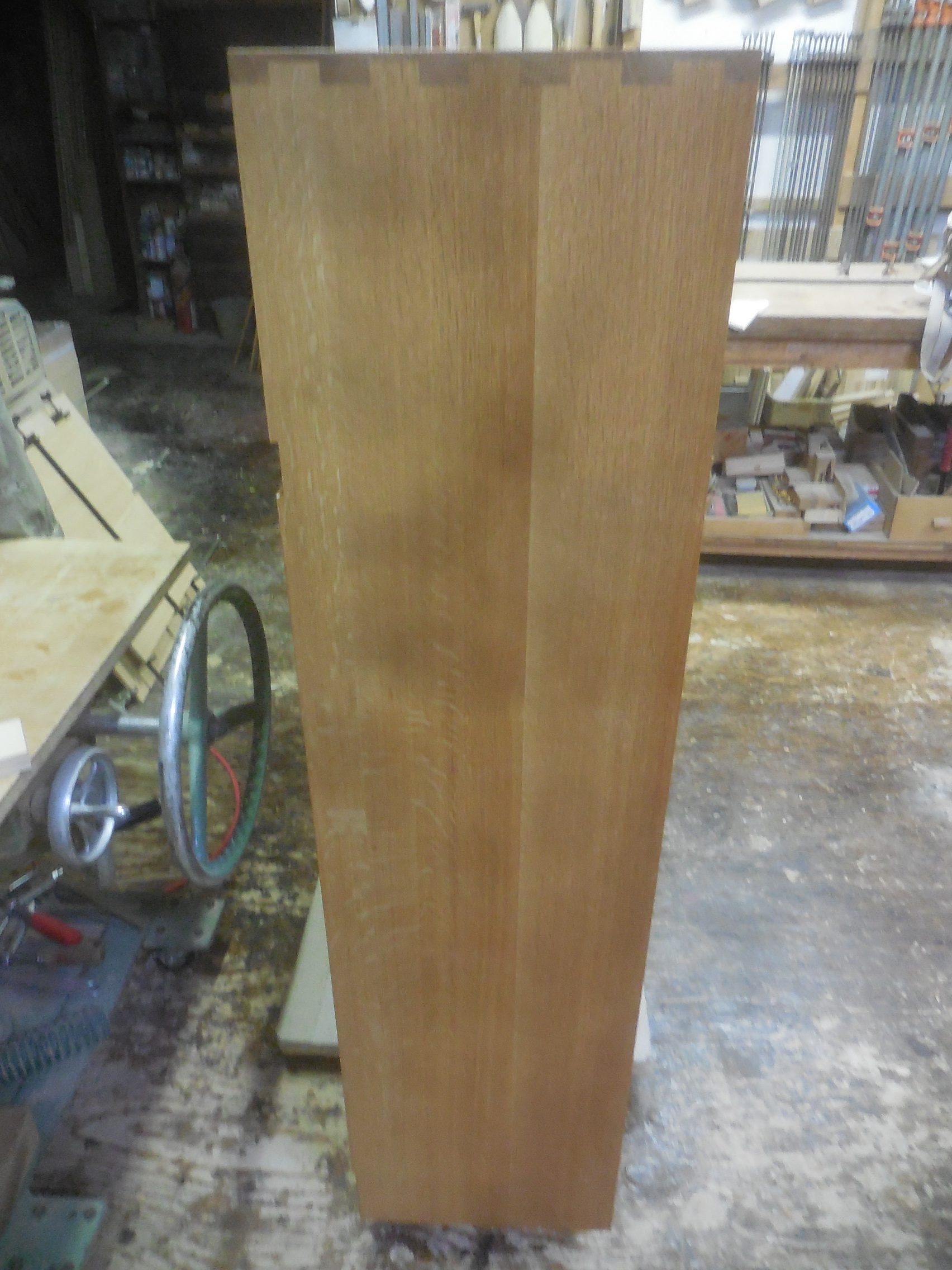 この下足箱の棚板はすべて固定棚なので一つずつホゾを作って一枚ずつ直角を確認しながら、組み立てていくので一列組み立てるだけに時間がかかりますし、一列ずつ組み立てるので、それぞれの高さを合わせることが結構難しく大変でしたが、いい経験になりました。