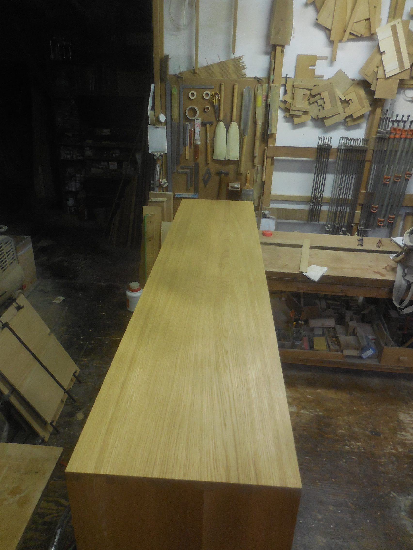 本当は、ヒノキ材で靴箱を製作されているのでよかったのでしょうが、在庫してあるナラ材の方が価格を抑えられるので、ナラ材で製作することになりました。
