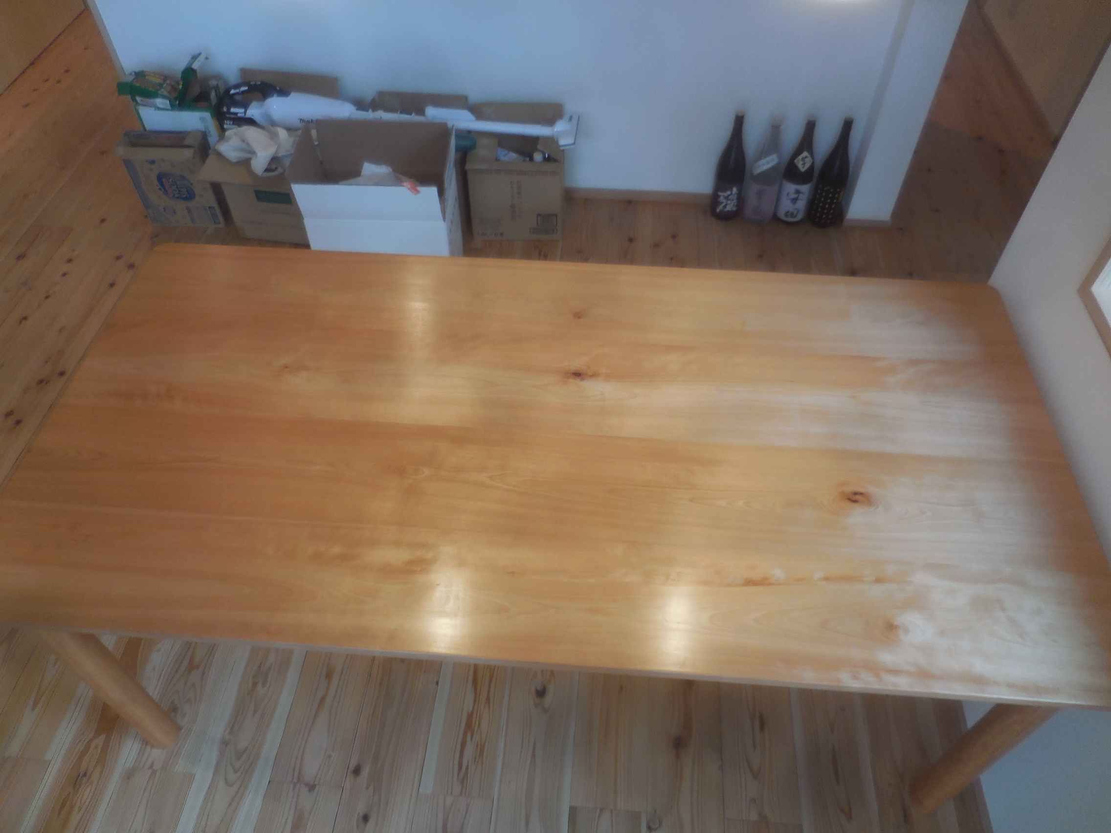 このテーブルは、春先に一度工房にお越しいただいたお客様からダイニングテーブルを探しているという